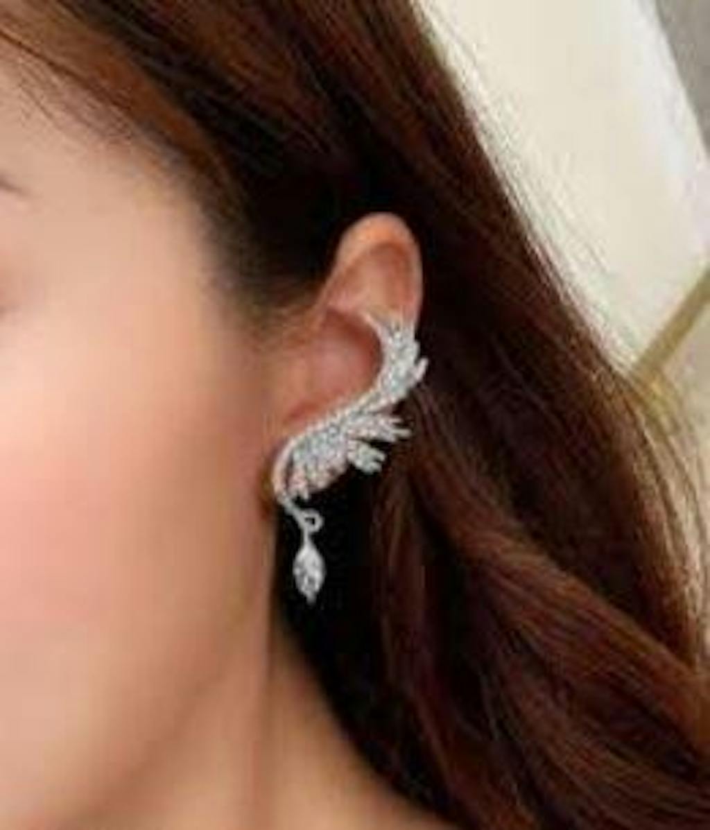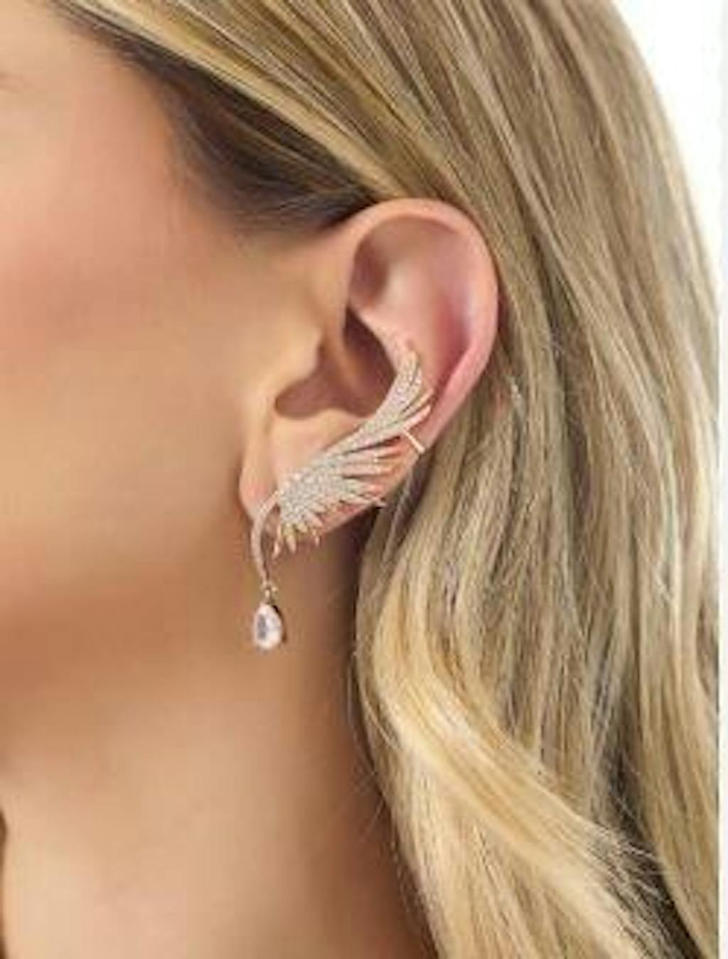 Apportez une touche élégante et audacieuse à votre style avec ce bijou d’oreille en forme d’aile, entièrement décoré de strass brillants. Son design raffiné capte la lumière à chaque mouvement et sublime le visage, sans besoin de perçage.