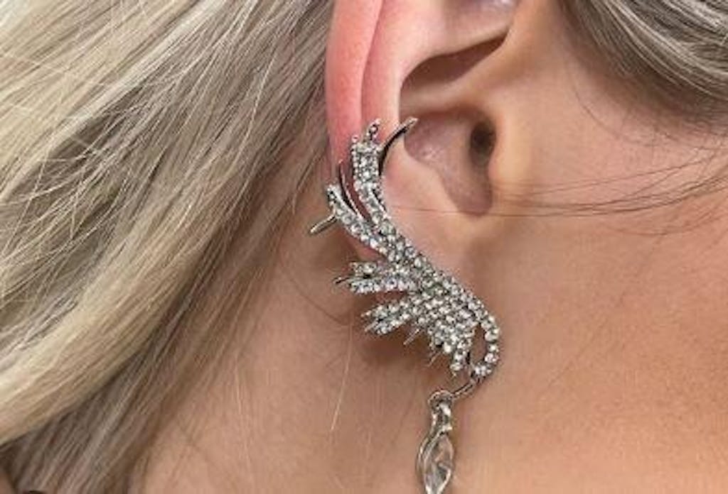 ✨ Bijou d’oreille aile en strass – Argent ✨