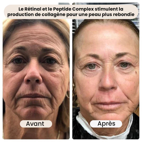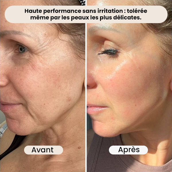 Sa formule avancée associe rétinal liposomé, peptides anti-âge et technologie de micro-particules pour des résultats rapides, visibles et progressifs.